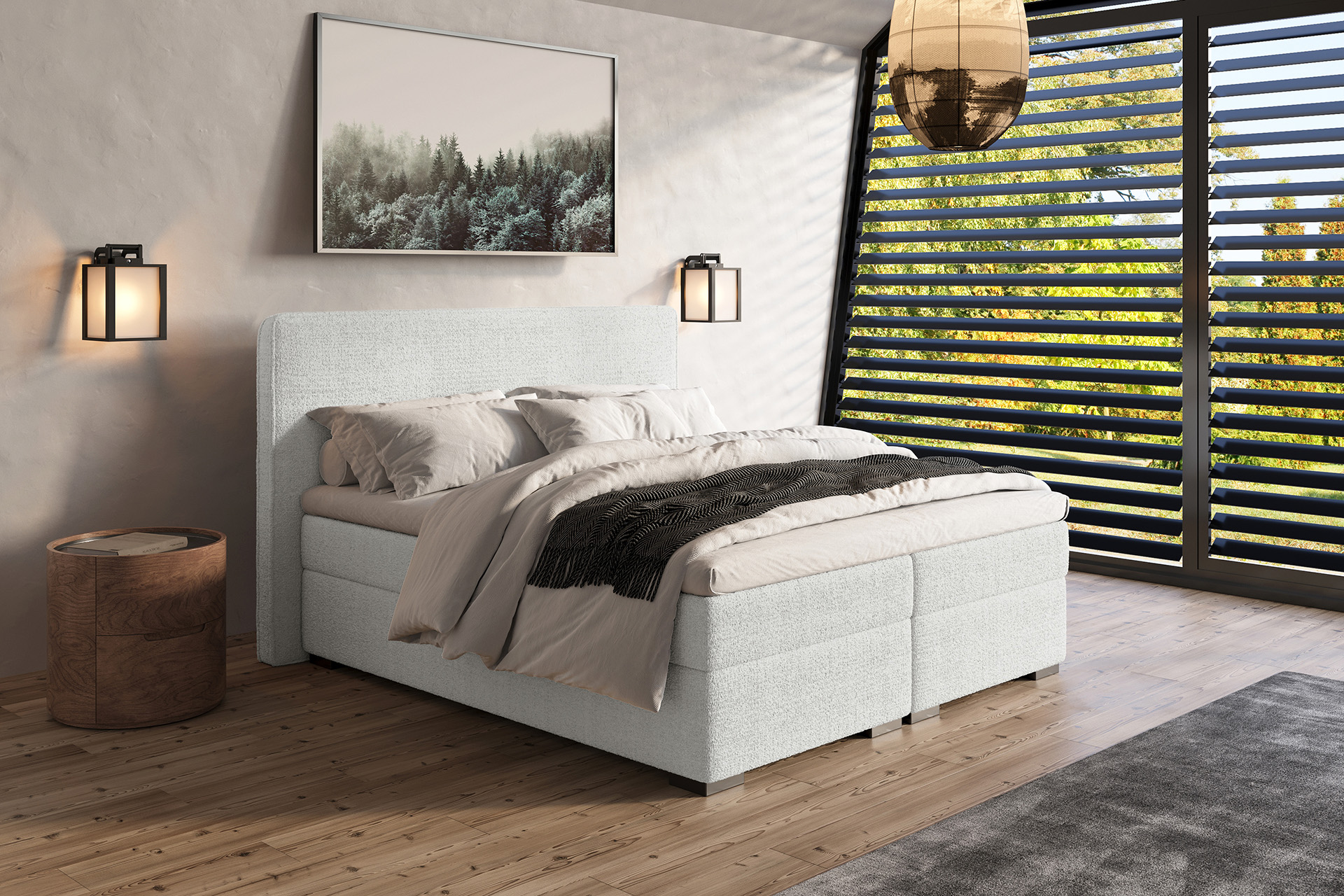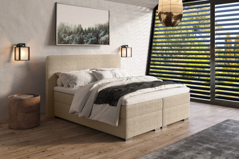 De boxspring Romy is voorzien van een hoofdbord van 1,2 meter hoog, gevuld met schuim en afgewerkt met een elegante opstaande rand. Dit stijlvolle detail geeft het ontwerp een moderne, luxueuze uitstraling en zorgt tegelijkertijd voor extra zachtheid en comfort. De Romy brengt rust en balans in de slaapkamer en past moeiteloos in uiteenlopende interieurstijlen. Met keuze uit verschillende stoffen, onderboxen, poten en matrassen stel je de Romy volledig samen naar jouw persoonlijke smaak en slaapvoorkeur. Voor een stijlvol geheel kun je de Romy uitbreiden met een bijpassend voetbord met opstaande rand, dat het ontwerp compleet maakt.